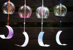 Die Fūrin (風鈴) ist eine traditionelle japanische Windglocke und ein Inbegriff des Sommers in Japan. Ihr zartes „Chirin“-Klingeln im Wind bringt ein Gefühl von Kühle, Ruhe und Nostalgie.